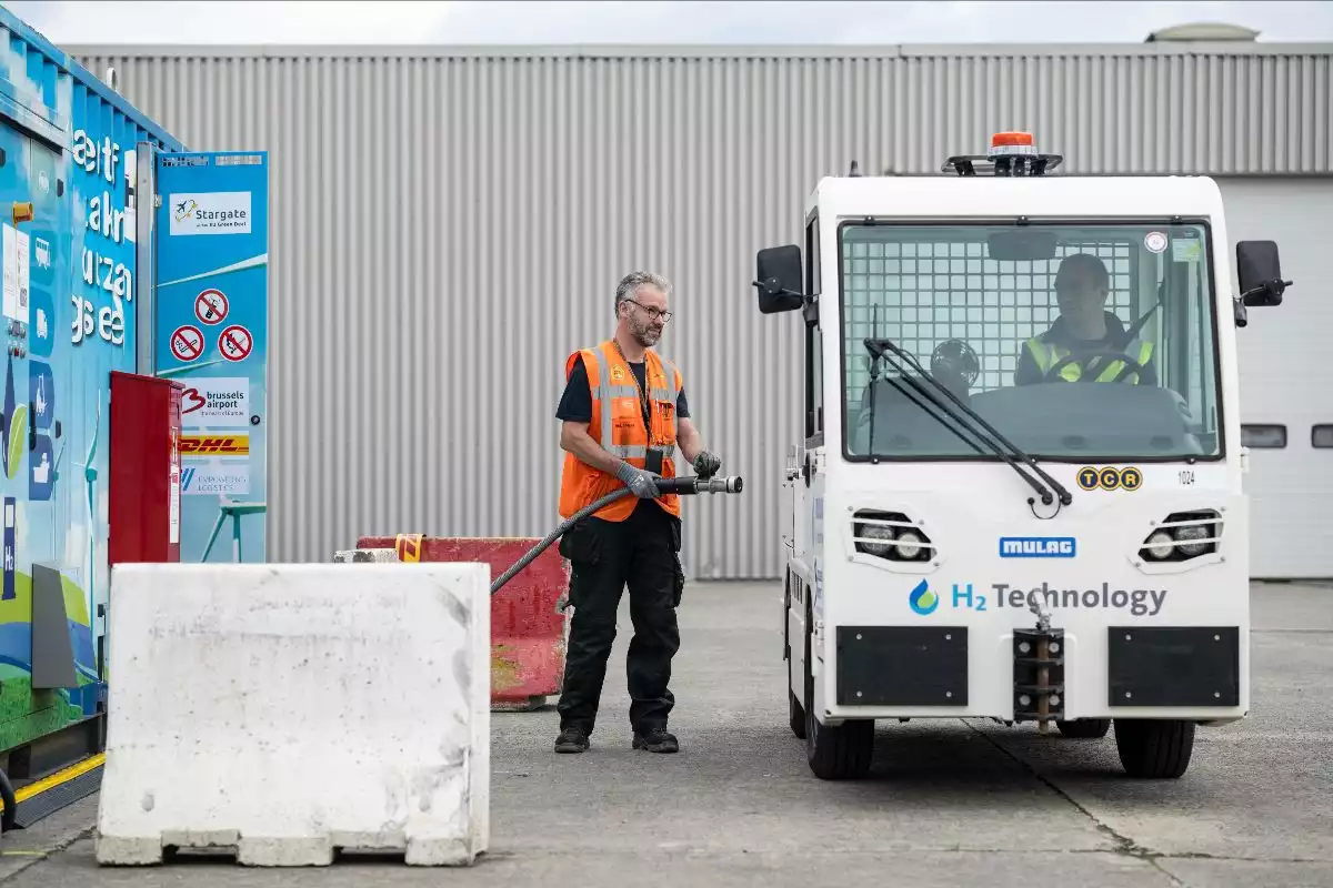 Brussels Airport et les partenaires du projet Stargate, qui s'inscrit dans le cadre du Green Deal européen, VIL et DHL testent actuellement une station de recharge d’hydrogène et un tracteur Mulag fonctionnant à l'hydrogène à Brussels Airport. Ce projet pilote d'utilisation de l'hydrogène pour la manutention au sol, une première