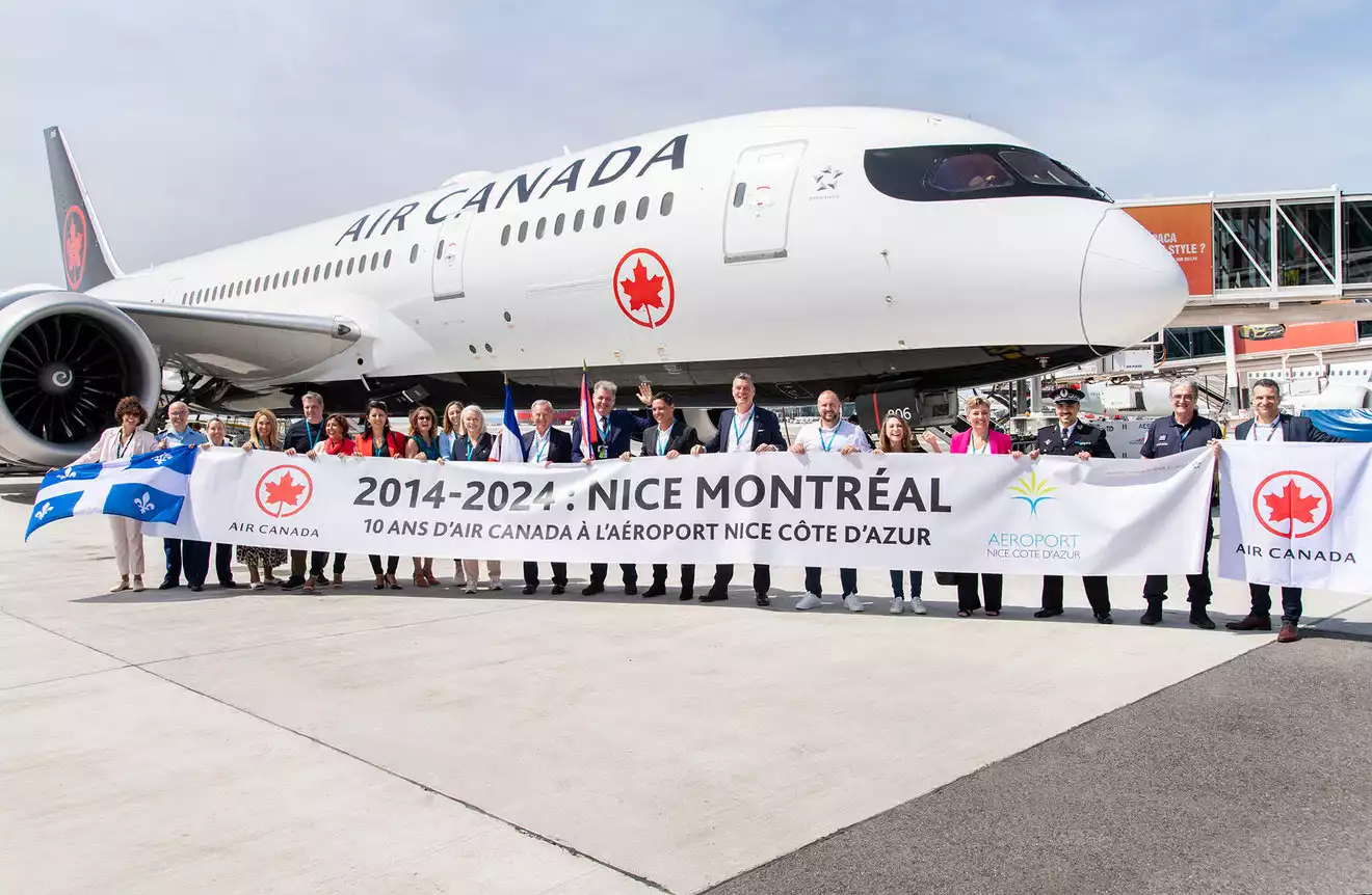 La compagnie Air Canada célèbre les 10 ans de sa liaison sans escale entre Nice et Montréal. En 2013, la liaison était opérée trois fois par semaine en Boeing 767-300. Pour la saison 2024, la compagnie offrira 32 373 sièges sur 109 rotations, contre 26 932 sièges sur 92 rotations en 2023 (+20%).