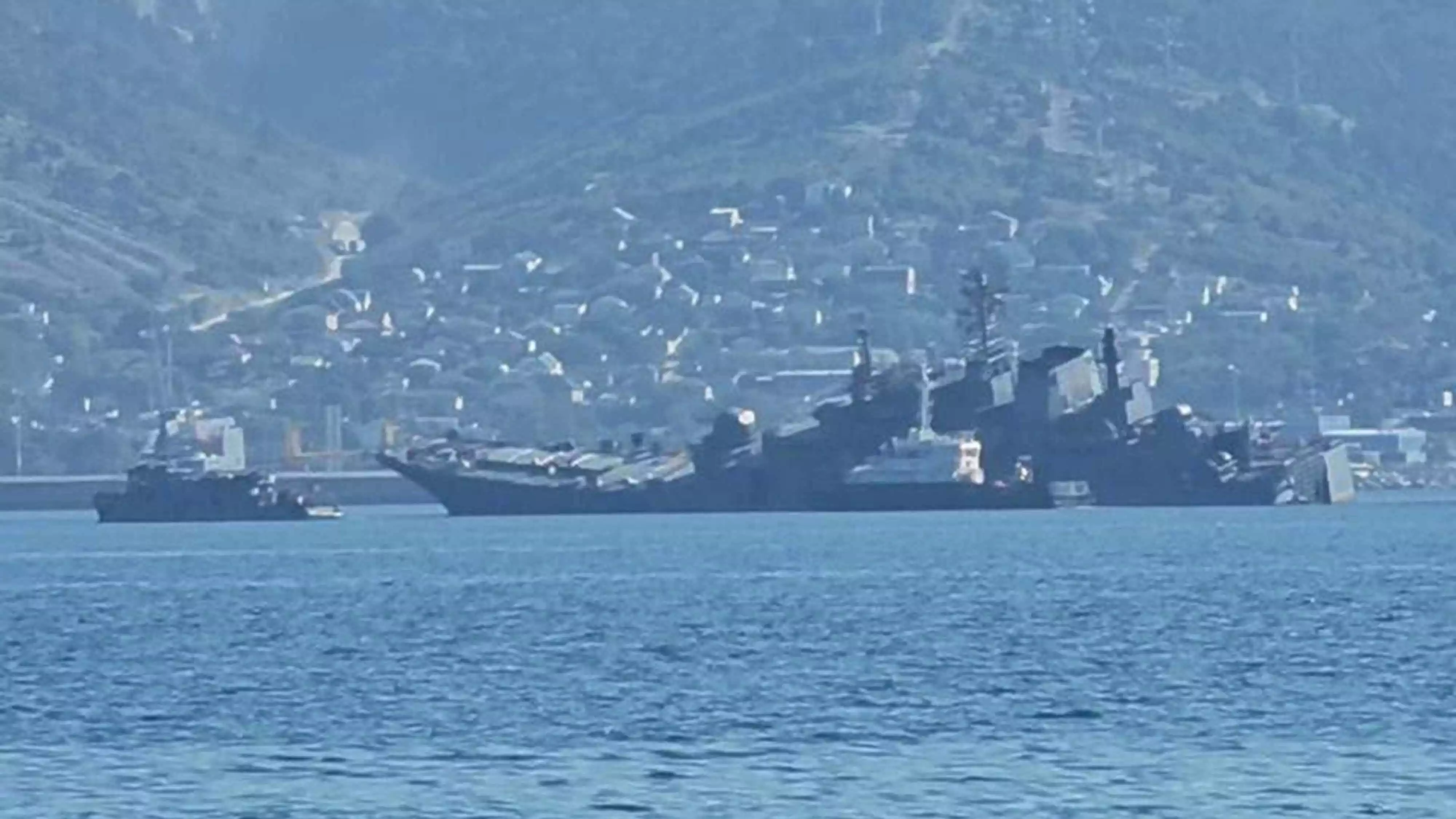 La vidéo permet de confirmer que le navire russe impacté est un navire de débarquement de chars (LST) de la classe Ropucha. Il s'agirait du Olenegorski Gornjak (SDK-91, classe Ropucha I) Des images et vidéos prises depuis les berges du port de Novorossiisk confirment l'impact (ci-dessous) :