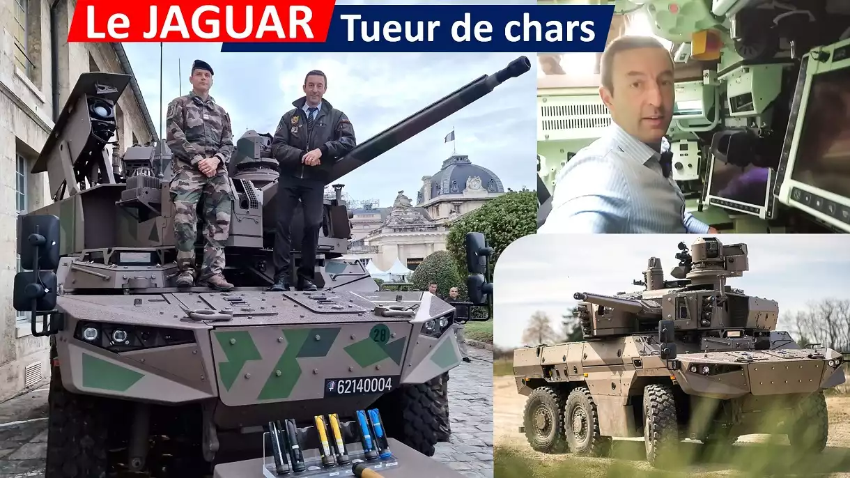 Visite guidée du Jaguar, le nouveau véhicule de combat de l' Armée de Terre qui remplace l'AMX-10RC dans le cadre du programme Scorpion, aux côtés des Griffon et Serval.