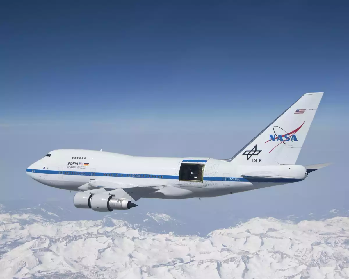 Le Boeing 747SP SOFIA a été utilisé comme avion de passagers par Pan Am, connu sous le nom de Clipper Lindbergh, de 1977 à 1986. Il a ensuite été utilisé par United Airlines jusqu'à ce que la NASA l'achète en 1997. L'avion a dû être modifié pour pouvoir transporter un télescope géant 2,5 mètres pesant 17 000 kilogrammes . Ce télescope a été fourni par l'Agence spatiale allemande (DLR), partenaire de la NASA pour la mission SOFIA. Le Boeing 747SP vole la nuit à haute altitude (jusqu'à 14 k environ) pour observer les étoiles en infrarouge depuis la stratosphère.