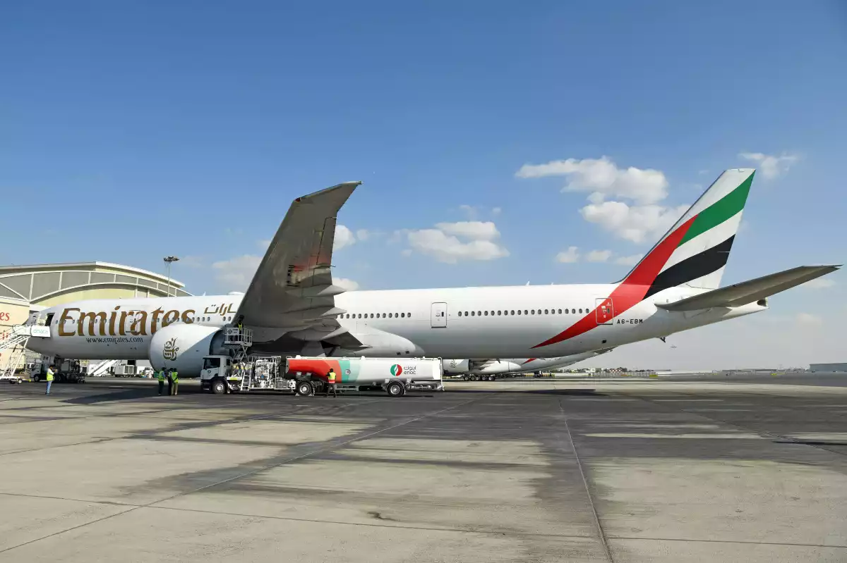 Emirates soutient depuis longtemps les efforts de l'industrie et des gouvernements pour encourager le développement de l'industrie du SAF, et participe régulièrement à des initiatives visant à contribuer au déploiement du SAF. Son premier vol alimenté par de la SAF mélangée à du kérosène a eu lieu en 2017, au départ de l'aéroport O'Hare de Chicago sur un Boeing 777. Emirates a reçu son premier A380 alimenté par de la SAF en décembre 2020, et a soulevé 32 tonnes de SAF pour ses vols au départ de Stockholm plus tôt cette année-là, avec le soutien du programme d'incitation aux biocarburants de Swedavia. Les vols au départ d'Oslo ont également commencé à fonctionner au SAF.
