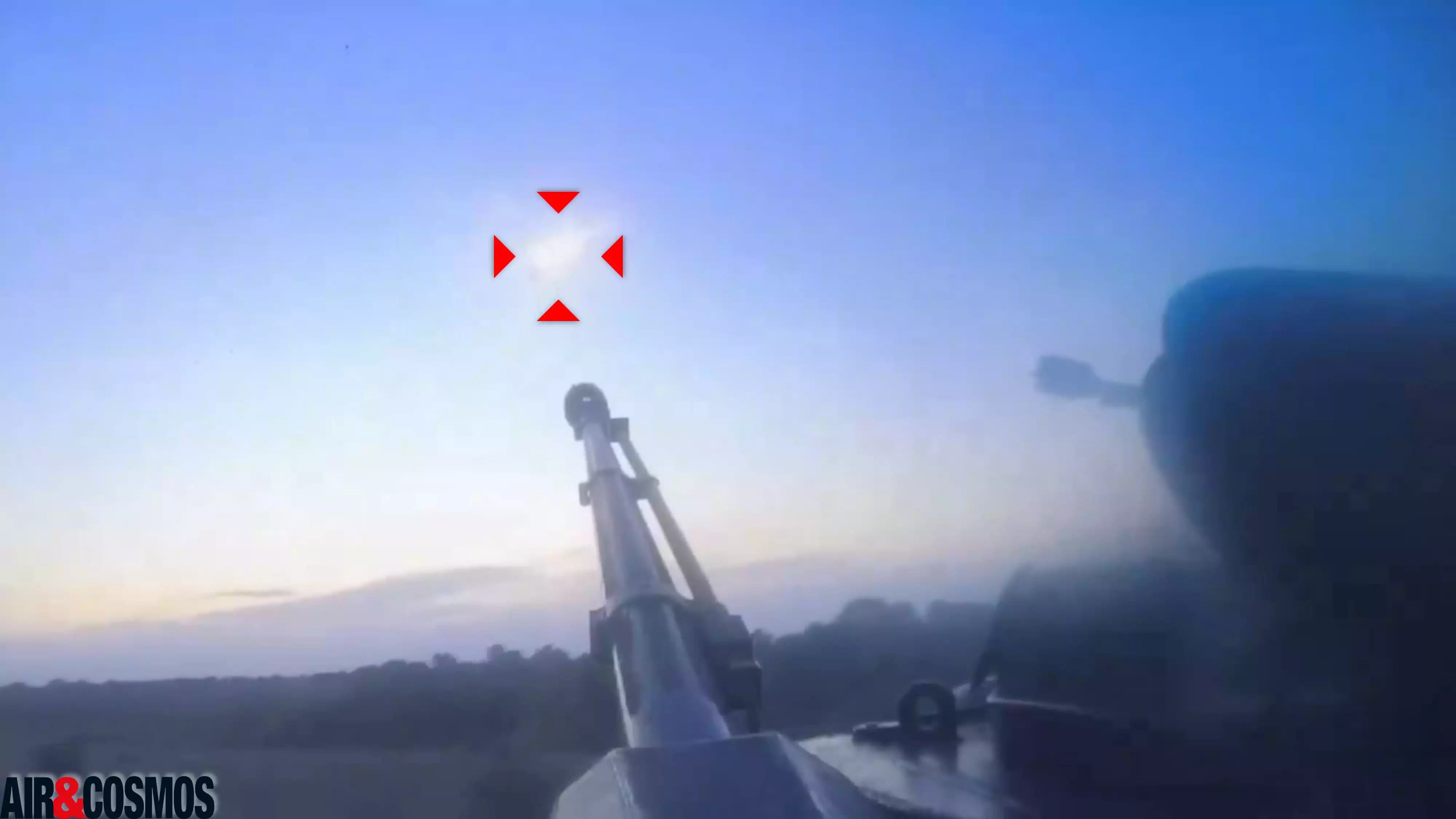 L’équipage d’un système antiaérien Flakpanzer Gepard ukrainien a placé une caméra sur l’un de ses deux canons de 35 mm. Celle-ci a pu filmer la destruction d’un drone suicide Shahed russe. Si la rafale fut brève, les deux canons à tir rapide permettent (en cumul) au Gepard de pouvoir tirer 18 obus par seconde !