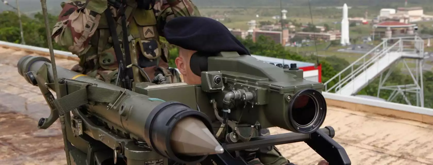 Entré en service en 1988 au sein de l’armée française, le missile Mistral développé par MBDA est un missile de défense anti-aérienne de courte portée pouvant atteindre des cibles jusqu’à 6km de distance avec une vitesse de 800 m/s. Le Mistral peut-être employé depuis le sol par un véhicule type P4 par exemple, par l’infanterie par un support à l’épaule appelé “Trépied” ou encore depuis un hélicoptère comme c’est le cas sur le Tigre ou la Gazelle. Le missile possède un guidage infrarouge passif permettant un tir "fire and forget", c'est-à-dire ne nécessitant pas de guidage jusqu'à la cible après le tir.