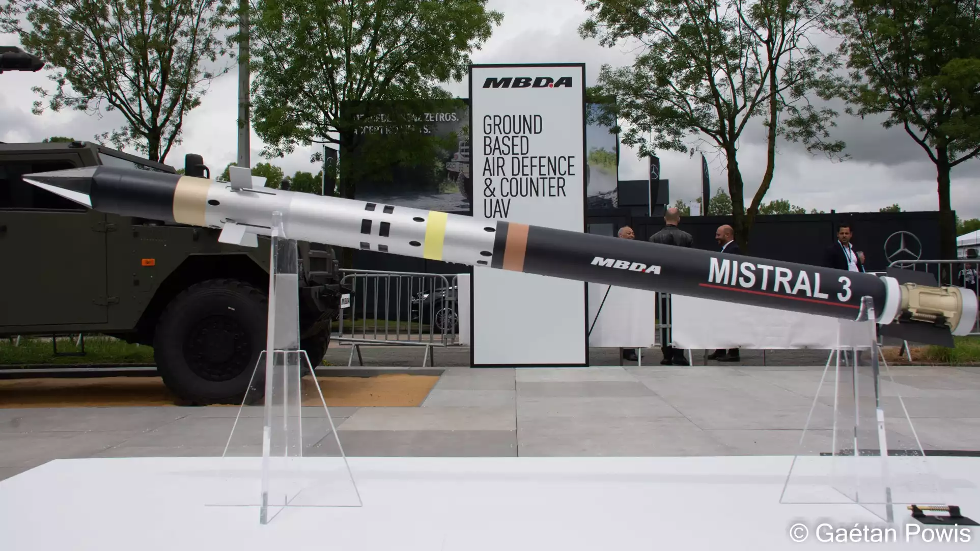 Ce 19 juin, beaucoup de personnes s'étaient rassemblées sur le stand du ministère des Armées. Et pour cause, un arrangement de coopération cadre a été signé pour charger la Direction Générale de l'Armement à acheter des missiles antiaériens très courte portée Mistral 3 au profit de cinq pays :