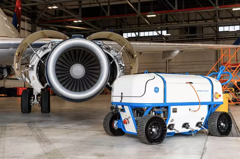 Utiliser la mousse à la place de l'eau pour le nettoyage des turboréacteurs, c'est l'idée de GE qui a mis au point un système de nettoyage spécifique, nommé 360 Foam Wash, dont le premier exemplaire va être utilisé par SkyWest.