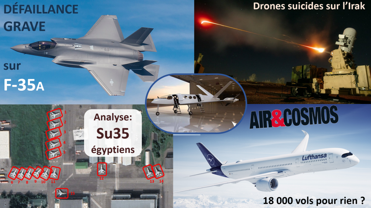 Au menu de la revue de presse : - Les Su-35 égyptiens bloqués en Russie ? - Grave panne sur F-35 en Corée du Sud - Le drone Reaper bientôt seul sur Barkhane - L'avion électrique Alice d'Eviation commence ses essais - Record en vue pour Arianespace - Le trafic aérien reprend (trop) doucement, et 18.000 vols inutiles pour Lufthansa ? - Drones suicides en Irak : le canon vulcain en action