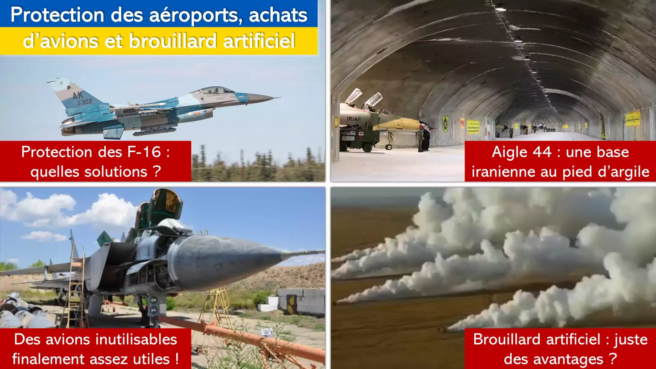 L’Ukraine prépare la future arrivée de ses avions de combat F-16 Fighting Falcon et a annoncé la construction de hangars souterrains pour les protéger. Cette solution offre une protection contre de nombreuses attaques mais également des inconvénients. Cas pratique avec la base souterraine iranienne Aigle 44 en Iran, qui détient même un talon d'Achille. Par ailleurs, les États-Unis auraient acheté au Kazakhstan des avions de combat inutilisables… mais qui seraient forts utiles pour l’Ukraine. Enfin, les Russes ont utilisé des camions à brouillard artificiel TDA-3 sur le champ de bataille : si les images sont impressionnantes, cette tactique vieille de plusieurs siècles comprend également des désavantages.
